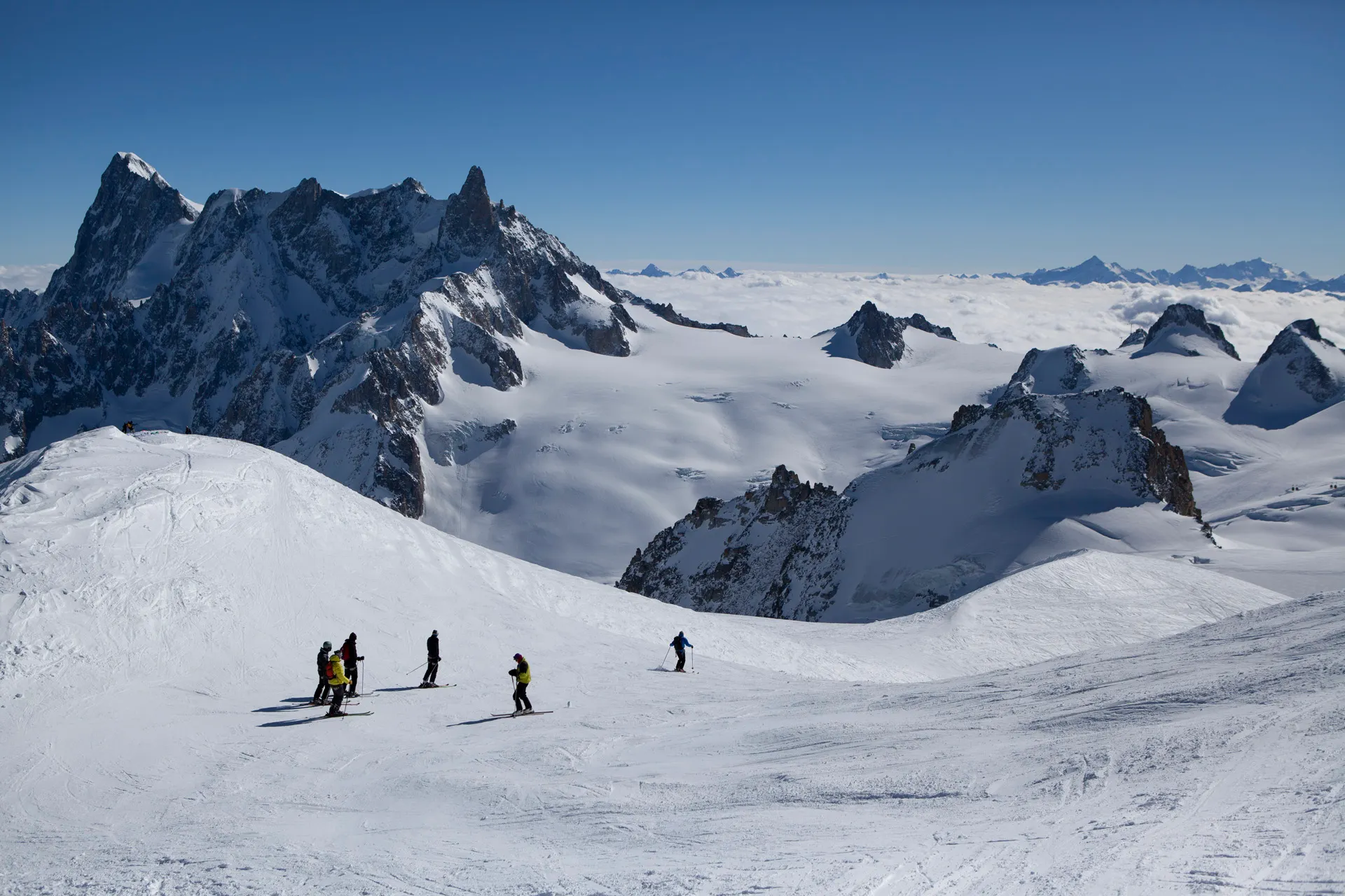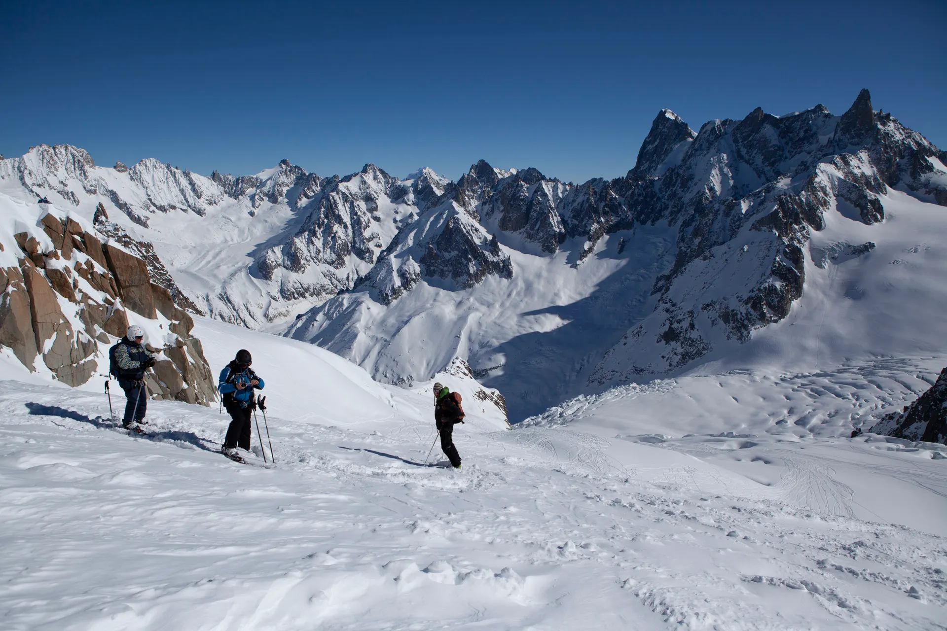 프랑스 샤모니와 스위스 베르비에르, 이탈이아의 몬테비안코가 보이는 발베니, 이탈리아 내륙의 유일한 4천m 이상 피크인 그랑빠리디(Grand Paradiso)까지 알프스의 핵심 지역을 스키로 넘나들게 됩니다.
