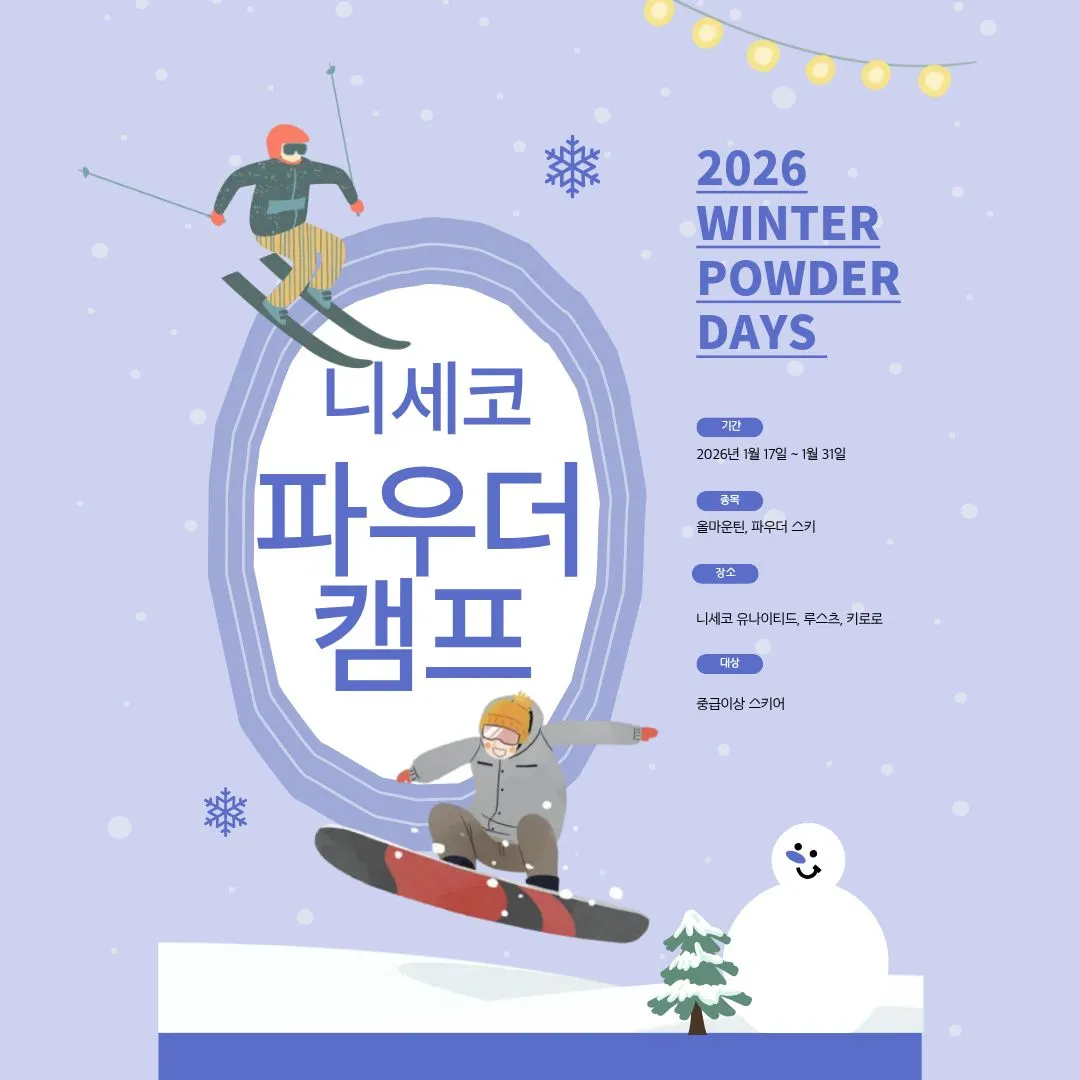 파우더 스노우의 성지 홋카이도, 니세코의 깊은 파우더와 아름다운 설경 속에서 잊지 못할 라이딩을 기획하게 되었습니다. 캠프는 총 2주 일정으로 참여자에 따라 2주 전일정, 또는 1주씩 자유롭게 선택 하여 참가 할 수 있습니다. 함께 니세코에서 개인별 스키 스킬을 업그레이 하는 기회를 갖고자 합니다. 대상 지역은 니세코 유나이티드 4개 스키장과 루스츠, 키로로 리조트까지 포함 합니다. 날씨에 따라 차량으로 각 리조트로 이동하며 스킹을 할 계획입니다. 본 캠프는 참가자들이 서로 기술을 나누고 피드백을 주고받으며, 스스로 성장할 수 있는 환경을 제공합니다.